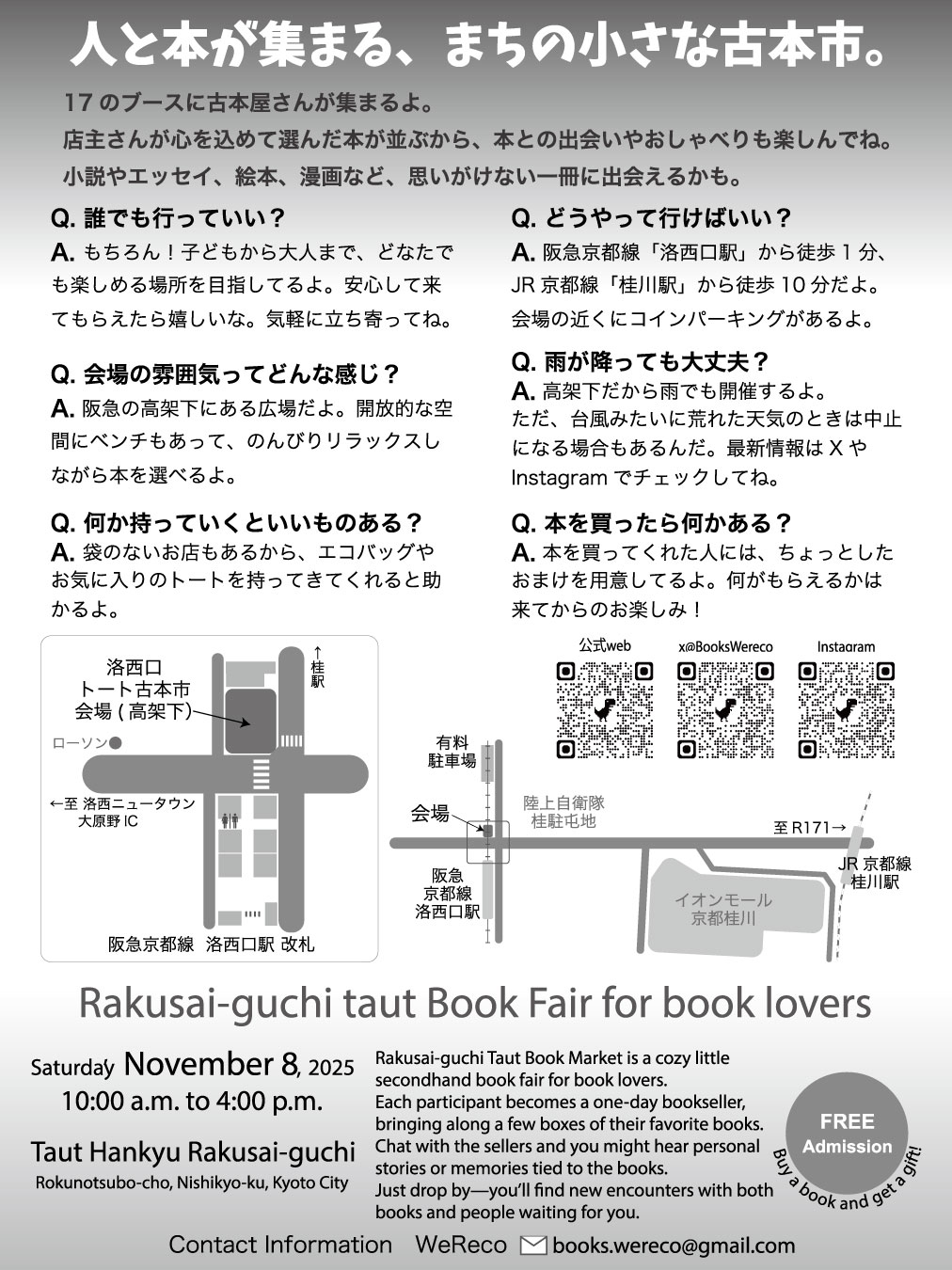 9月,10月も毎週末どこかで古本市が開催されます*1ますので,そこで配布できるように,チラシを作成しました.悩んだのは裏面で,どう書けばわかりやすいかなど,ChatGPTとやりとりした結果,最終的にはQA方式としてみました.