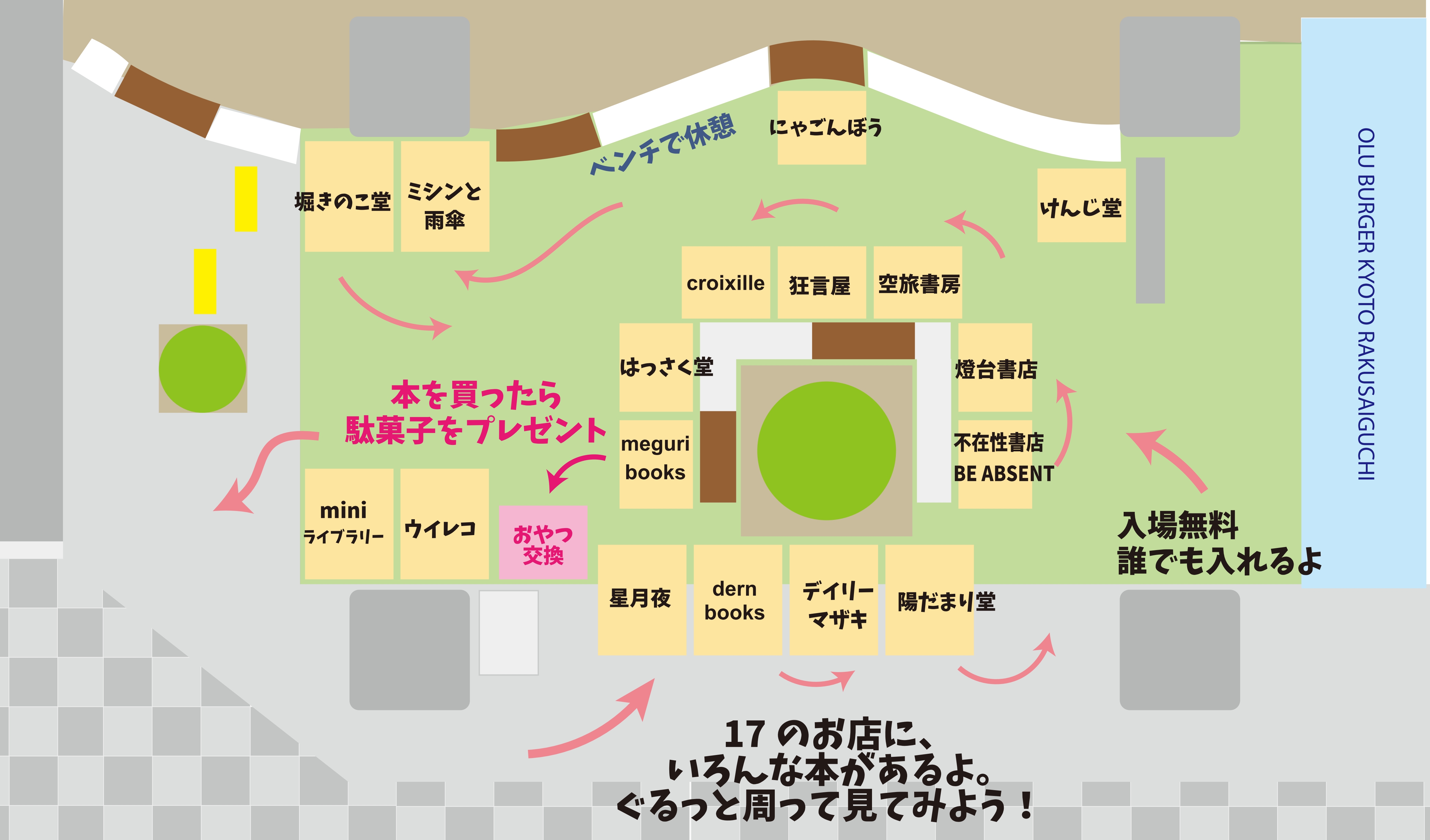 本をご購入いただいたお客さまには「おやつ引換券」をお渡しください(引換券は当日配布)。- シールラリーの台紙をお客さまに配布します。本をお買い上げいただいた方にシールを貼ってあげてください(お子さんなどはお買い上げいただかなくても貼ってあげてください!)